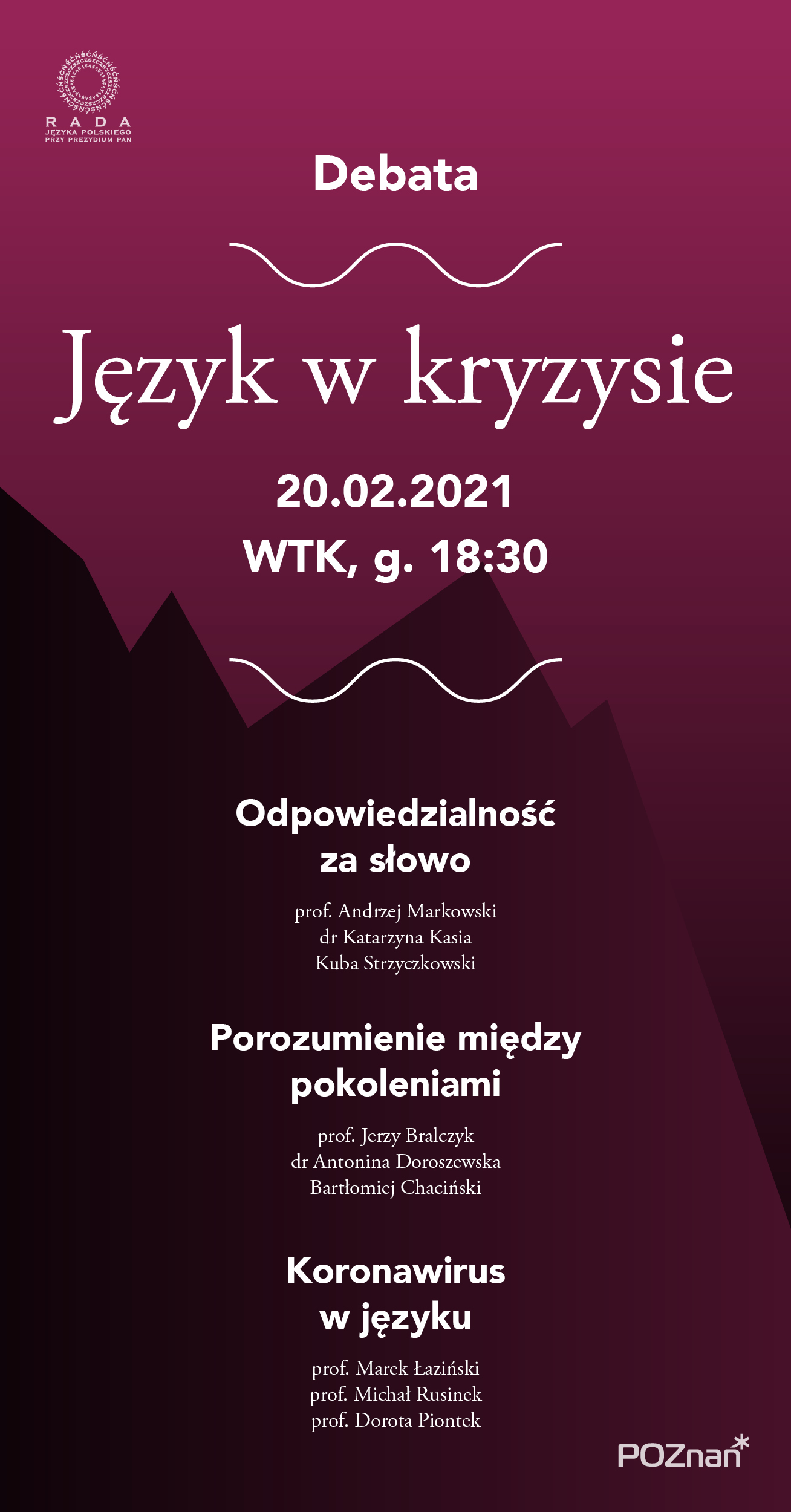 Tegoroczna debata z okazji z okazji Międzynarodowego Dnia Języka Ojczystego odbyła się w dniu poprzedzającym jego święto – 20 lutego. Z powodu pandemii koronawirusa dyskusje zostały przeniesione do przestrzeni wirtualnej. Spotkanie, którego hasło przewodnie brzmiało „Język w kryzysie”, podzielono na trzy 45-minutowe panele dyskusyjne: „Odpowiedzialność za słowo”, „Porozumienie między pokoleniami” oraz „Koronawirus w języku”.