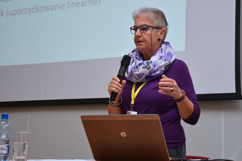 Po przerwie na obiad nastąpiła druga sesja referatów. Jako pierwsza wystąpiła prof. Aldona Skudrzyk z Uniwersytetu Śląskiego, która zwróciła uwagę na stan języka w obliczu współczesnych technologicznych przemian komunikacji. Punkt wyjścia dla badaczki stanowiła perspektywa wyznaczona przez Ongowską opozycję oralność – piśmienność rozumiana jako dwa style poznawcze, dwa sposoby myślenia, dwa sposoby kodowania i dekodowania wypowiedzi. Próbując odpowiedzieć na pytanie o zmierzch kultury pisma, autorka wskazała kilka czynników, które warunkują powstanie nowego typu komunikacji – komunikacji o charakterze inferencyjnym. Ten typ porozumiewania się bierze swój początek we wspólnym doświadczeniu komunikacyjnym młodego pokolenia, jakim są nowe media – ich nieciągłość, alinearność. Ponadto komunikacja zdominowana przez obraz redukuje obecność języka, a tym samym wpływa na zasady percepcji rzeczywistości. Zdaniem referentki w konsekwencji powstaje nowy sposób myślenia, nowa jego „składnia” i odmienny sposób postrzegania świata. Zmiany kulturowe współczesności wzmacniają inferencyjny charakter komunikacji. Konstruowanie pełnego sensu przekazu kieruje jego odbiorcę w stronę synestezyjnego kontekstu i indywidualnego odbioru, nie zaś w stronę tradycji tekstu i kodu językowego. W konsekwencji wspólnota komunikacyjna stawać się może w ten sposób zbiorem mniej lub bardziej różnicujących się idiolektów. Prelegentka podzieliła się również obserwacjami dotyczącymi przejawów przewartościowań funkcji wypowiedzi młodych użytkowników języka. Łatwość, powszechność, szybkość kontaktu i jego powierzchowność dają im niejako prawo do mówienia o niczym. Za jeden z nich uznaje się zasadę odwróconych wektorów, która znajduje swe odzwierciedlenie w odwrotnej socjalizacji (pokolenie starsze poddane jest socjalizującej presji pokolenia młodszego, będącego źródłem wiedzy i nowych form zachowań) oraz odwrotnej adaptacji.