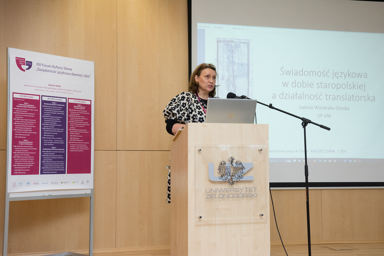 Druga sesja referatowa była poświęcona rozwojowi świadomości językowej Polaków od czasów staropolskich do 1939 r. Pierwsza referentka, prof. Izabela Winiarska-Górska, omówiła przejawy wpływu działalności translatorskiej na rozwój renesansowej polszczyzny i wzrost powszechnej świadomości rodzimego języka. Na wybranych przykładach prac translatorskich z XVI wieku ukazała przejawy refleksji nad językiem oraz podjęte przez tłumaczy dążenia mające na celu uczynienie z języka polskiego zróżnicowanego stylistycznie, optymalnego narzędzia komunikacji w różnych dziedzinach życia, zwłaszcza w obrębie kultury wyższej.