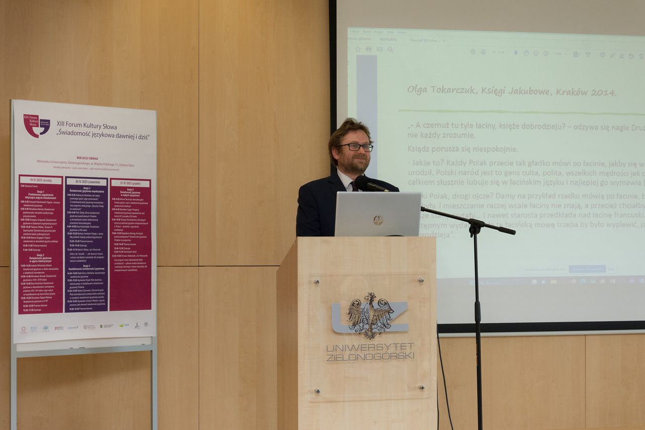 W dniach 19–21 kwietnia 2023 r. odbyło się w Zielonej Górze XIII Forum Kultury Słowa. W konferencji po raz pierwszy można było uczestniczyć także w trybie online. Do udziału w trzydniowych obradach zaproszono nie tylko językoznawców, lecz także przedstawicieli innych dziedzin, w których świadomość językowa i językoznawcza odgrywają szczególną rolę, m.in. socjologów, politologów, psychologów, nauczycieli. Organizatorami byli Rada Języka Polskiego przy Prezydium Polskiej Akademii Nauk, Polska Akademia Nauk, Uniwersytet Zielonogórski i Fundacja PRO.PL.